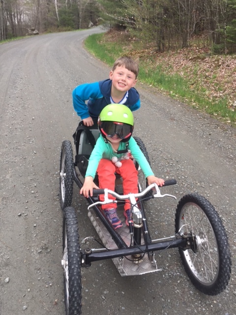 There is no doubt that we are giving this parenting gig our best effort; however, in those moments when we realize just how badly a situation could have turned out, we shake our heads in disbelief at how we could have been so stupid. See the kids in this picture, smiling, wearing protective head gear, goggles of course. Our son asked Geoff if he could try the adaptive downhiller, not his first time asking, but the first time Geoff agreed to let him try after having proven he can handle the squeeze breaks. Maybe it was the crisp air or the fact that both kids love bike riding that told us this was a good decision.