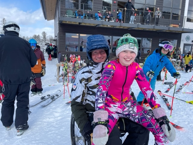 Mind you, my husband is a superhero of sorts. He travels the world for skiing and visits other mountains regularly for his work on the PSIA National Demonstration Team as the adaptive coach. He not only consults with adaptive sports programs and individuals; he is the training director for Loon Mountains Snowsports, but there are people in these places he can count on to help him if, on the rare occasion, he does.