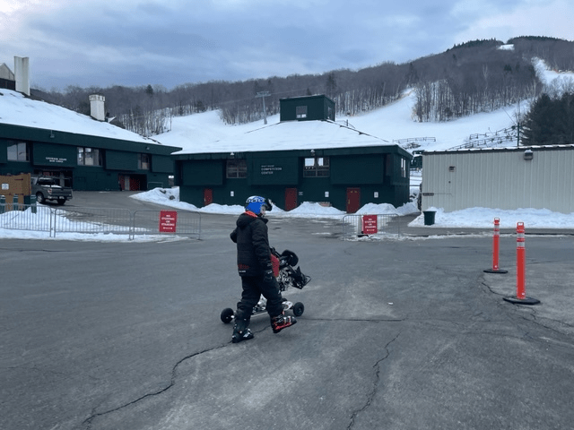But now that they are older, it is getting easier for them to do things independently with just their dad – although with that added independence comes a whole lot more gear. The fact that Geoff travels a lot during the winter with his mono ski also requires help on the mountain end. As a mono skier, one does not just rent a pair of skis like others might when traveling to another ski resort. Nor can he just rent a bike easily when the idea of a cycling trip somewhere pops up as a potential family vacation. He is blessed by an amazing work family who always helps to load him up to go anywhere – but when it comes time to return equipment and gear after a trip, he must rely on the three folks he lives with because his day starts so early at Loon Mountain. This winter, we’ve both been really impressed with the strength and care our son has shown when loading and unloading Geoff’s gear.