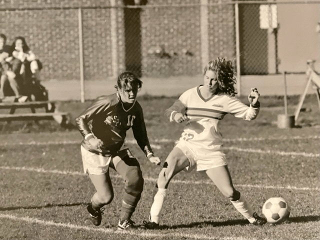The weather certainly didn’t help, until the last day, of course, today in fact, as I’m happily writing in the sunshine of my front porch, birds chirping up a symphony of good stuff, the daffodils just turning yellow, the bald eagle swooping down to the river in front of our house. So, when Geoff asked me for help because he needed a “standing” picture of himself, I chuckled, thinking, “Oh, this is an easy one.” There are many of him standing, thanks to his parents’ unparalleled skill at documenting his childhood, printing photos and putting them into frames. We also have a lot of those standing photos scanned into a wide variety of PowerPoint presentations used over the years for various speaking engagements. But guess what, I could not find the one photo he really wanted to send them to be part of this short film being made by Nordica about his world as a professional skier. Instead, I found many other items that had been missing since we moved into this new house. I tried, time after time, to channel my best Polly Ehrman, my mom who was never rattled by anything, not whiny kids or needy husbands, bad weather? Pshaw. Those clouds are going to burn off no matter the rain coming down. Yeah, that woman. Well, I could not find her in the boxes in the attic; nor could I find that patience in the photo albums stored above the garage. But I did find this old photo of me playing soccer, the one time I made it in the newspaper, and seeing that strong young woman made me smile.