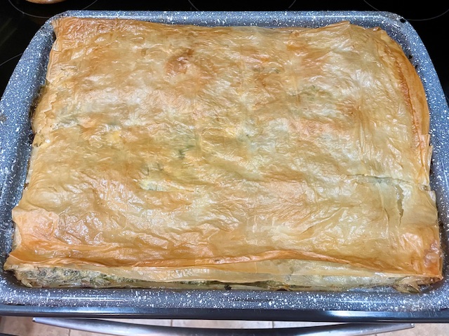 She insisted on making spinach pie with Greta so that the tradition would continue after she was gone.  Further, she brought the broiler pan she always used when making it, first emphasizing to Greta that this was the perfect shaped pan, extra wide to meet the needs of the phyllo dough and not too deep like a casserole dish. She walked our 12 year old through all the steps, including what to be careful with when dealing in phyllo dough and making sure the frozen spinach had thawed, drained and almost dried; otherwise one risked a soggy spinach pie.  “Are we actually Greek, Gram?” she had asked about halfway through after reading that phyllo dough was Greek, and she knew feta was in many kinds of Mediterranean dishes.  My mom had explained that she got this recipe a hundred years ago from her Greek friend Kathy, and everyone in the family loved it, especially Pop Pop, my brother, and Uncle Karl, her sister’s husband.  When we were children, they spent a lot of Christmases with us, and, in the same breath, she told Greta, “We can make the spinach pie ahead of time and freeze until the holidays.”